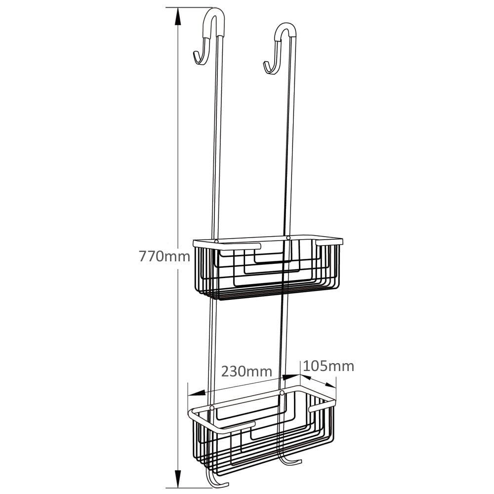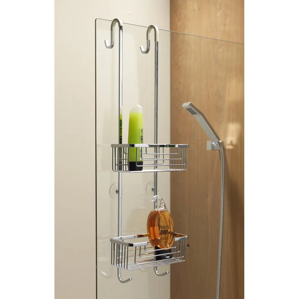 - Chrome hooks enable caddy to be hung from bath screen or shower enclosure