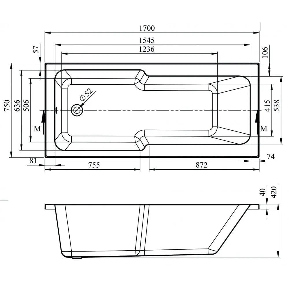 Iowa Shower Bath (Standard Spec) – 1700 x 750mm