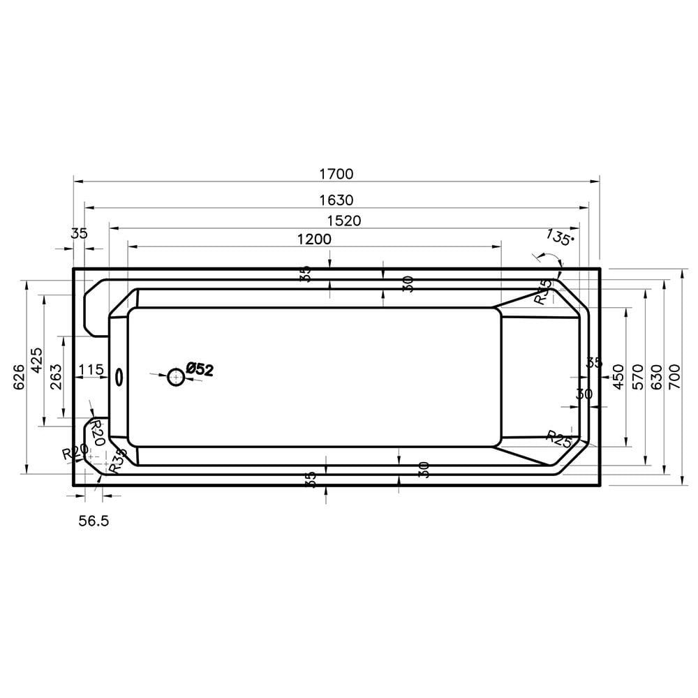 - Bath Size: 1700mm x 700mm