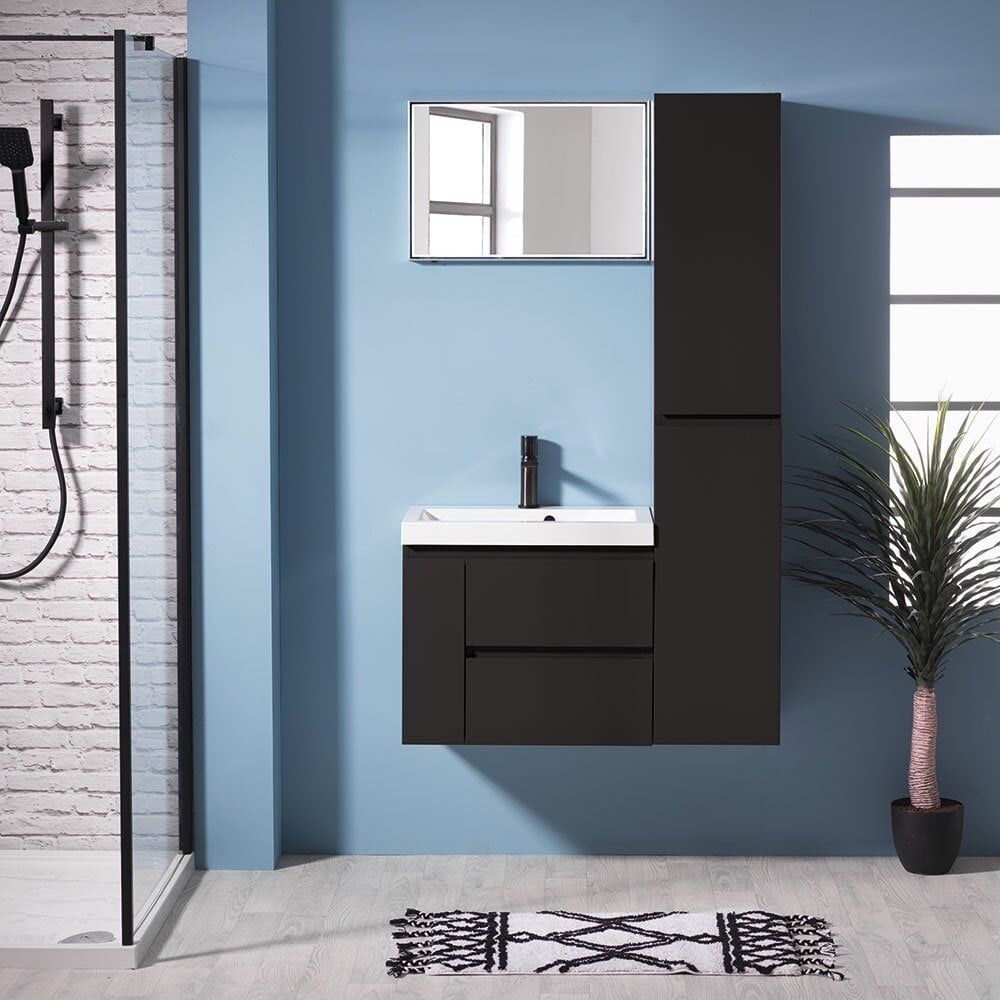 Modena 60 Wall-Hung Base Unit & Basin with Optional Column – Matt Black