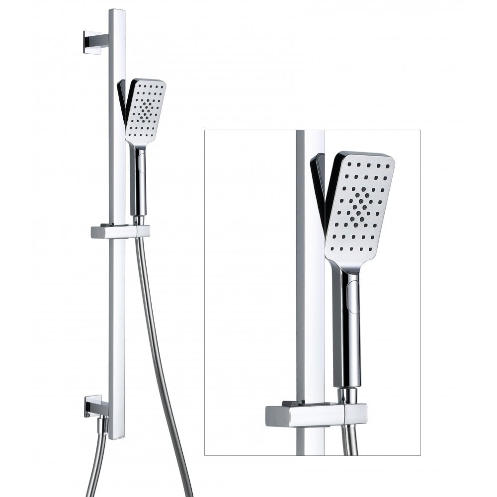 Nevada Square Handset, Slide Bar, Hose & Inlet