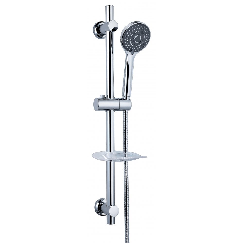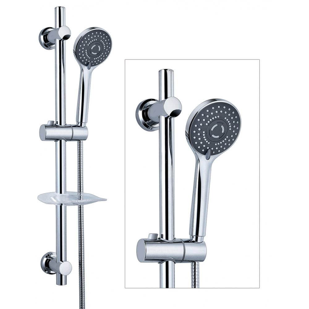 Slider Kit Includes:– Round Slide Bar, Handset, Hose & Soap Dish