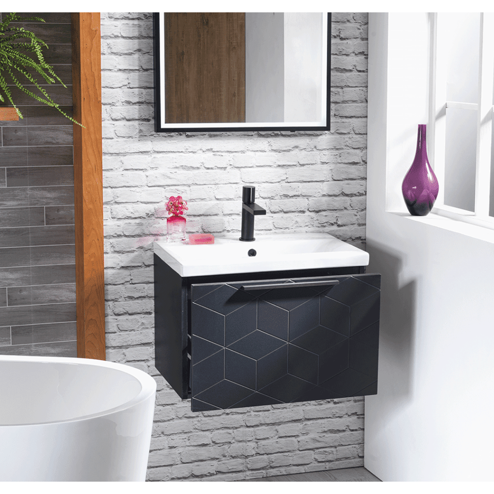 - Geo 600mm 1 Drawer Wall-Hung Base Unit (Matt Black Finish)