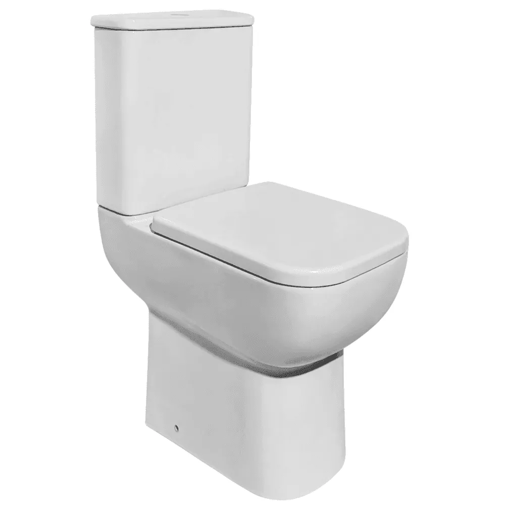 - White Ceramic Rimless Tall Close Coupled Open Sided Pan & Soft Close Seat