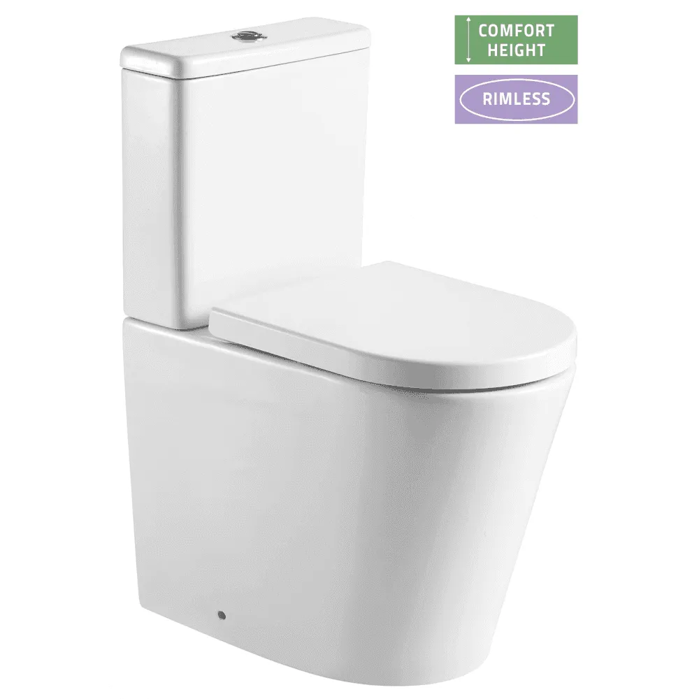 - White Ceramic Close Coupled Comfort/Elevated Height Pan & Soft Close Seat