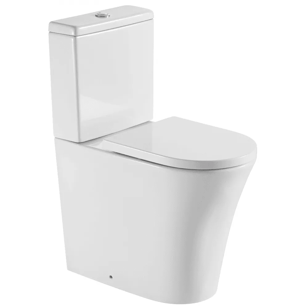 • White Ceramic Close Coupled Rimless Comfort Height Closed Back Pan & Soft Close Seat