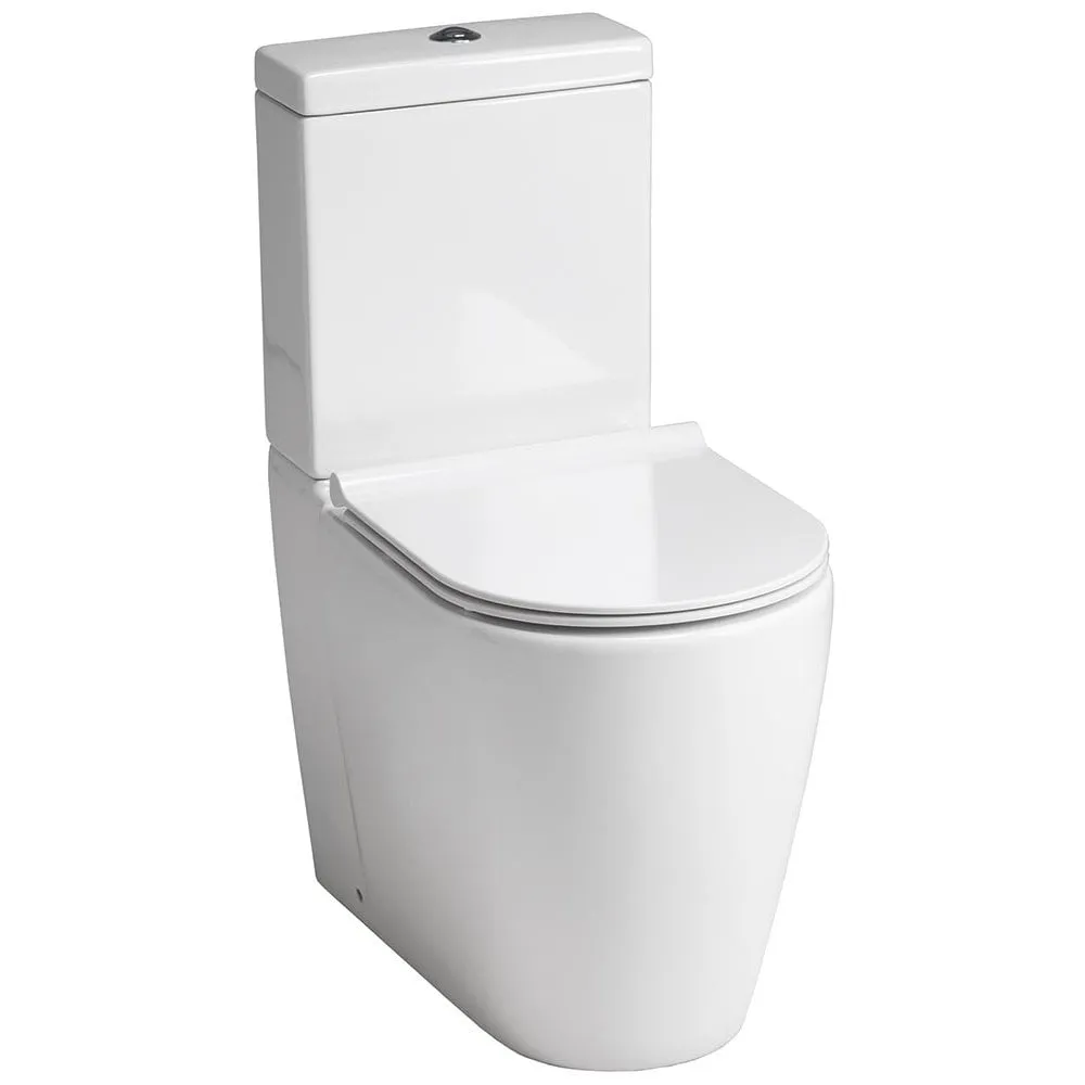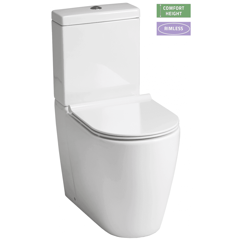 • White Ceramic Close Coupled Comfort/Elevated Height Pan and Soft Close Seat