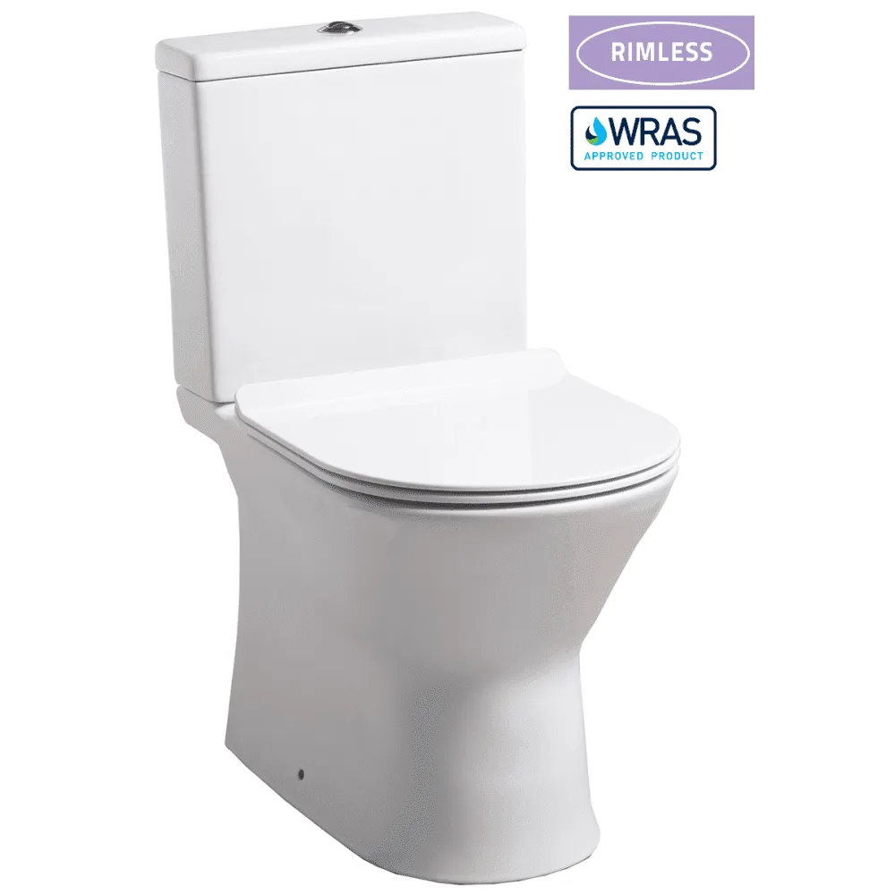 - White Ceramic Rimless Close Coupled Pan & Soft Close Seat