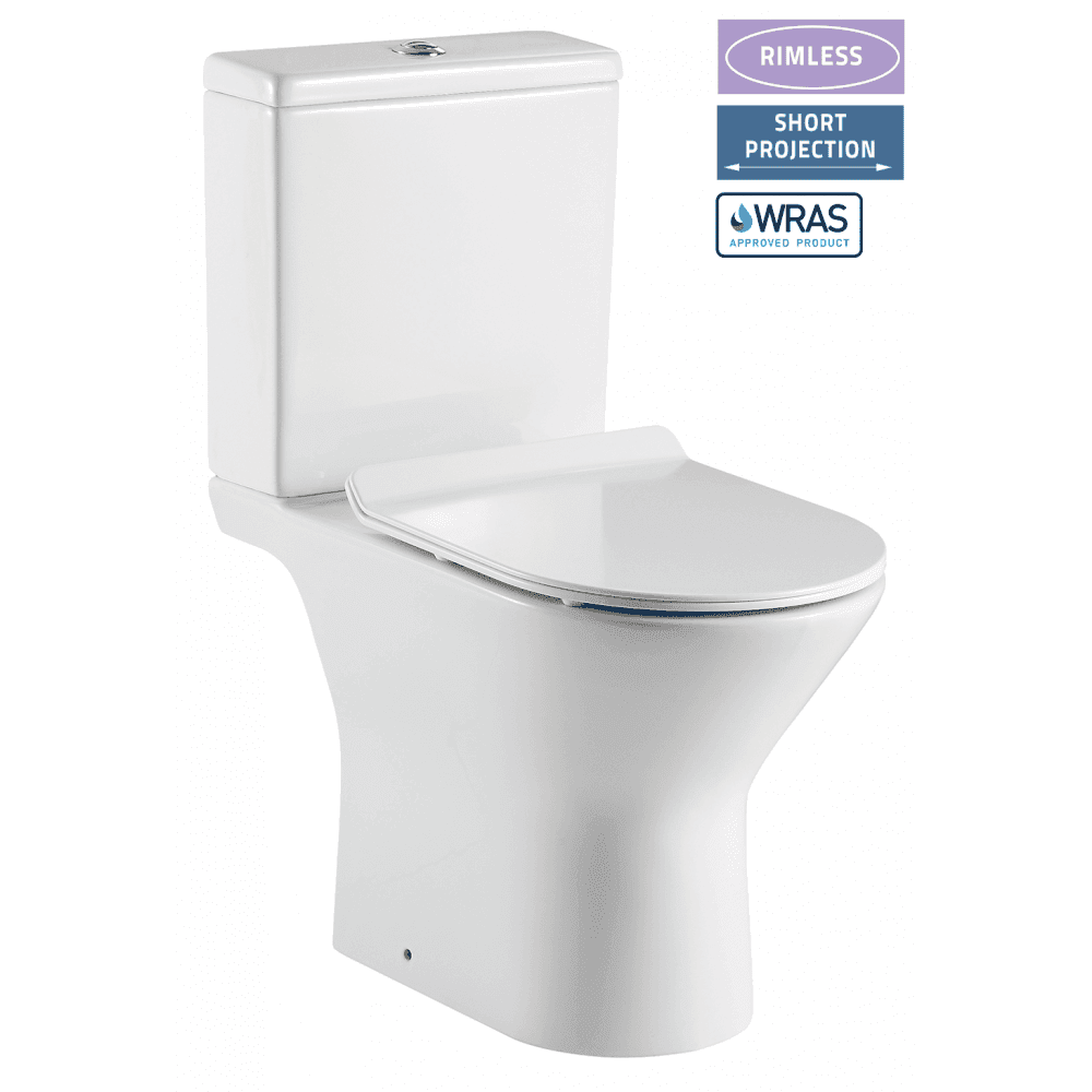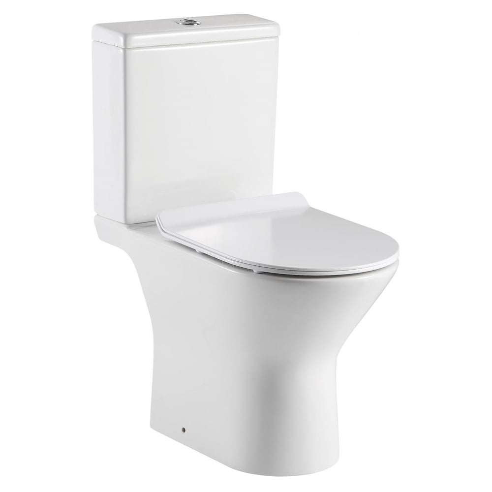 - White Ceramic Rimless Close Coupled Open Sided Pan & Soft Close Seat